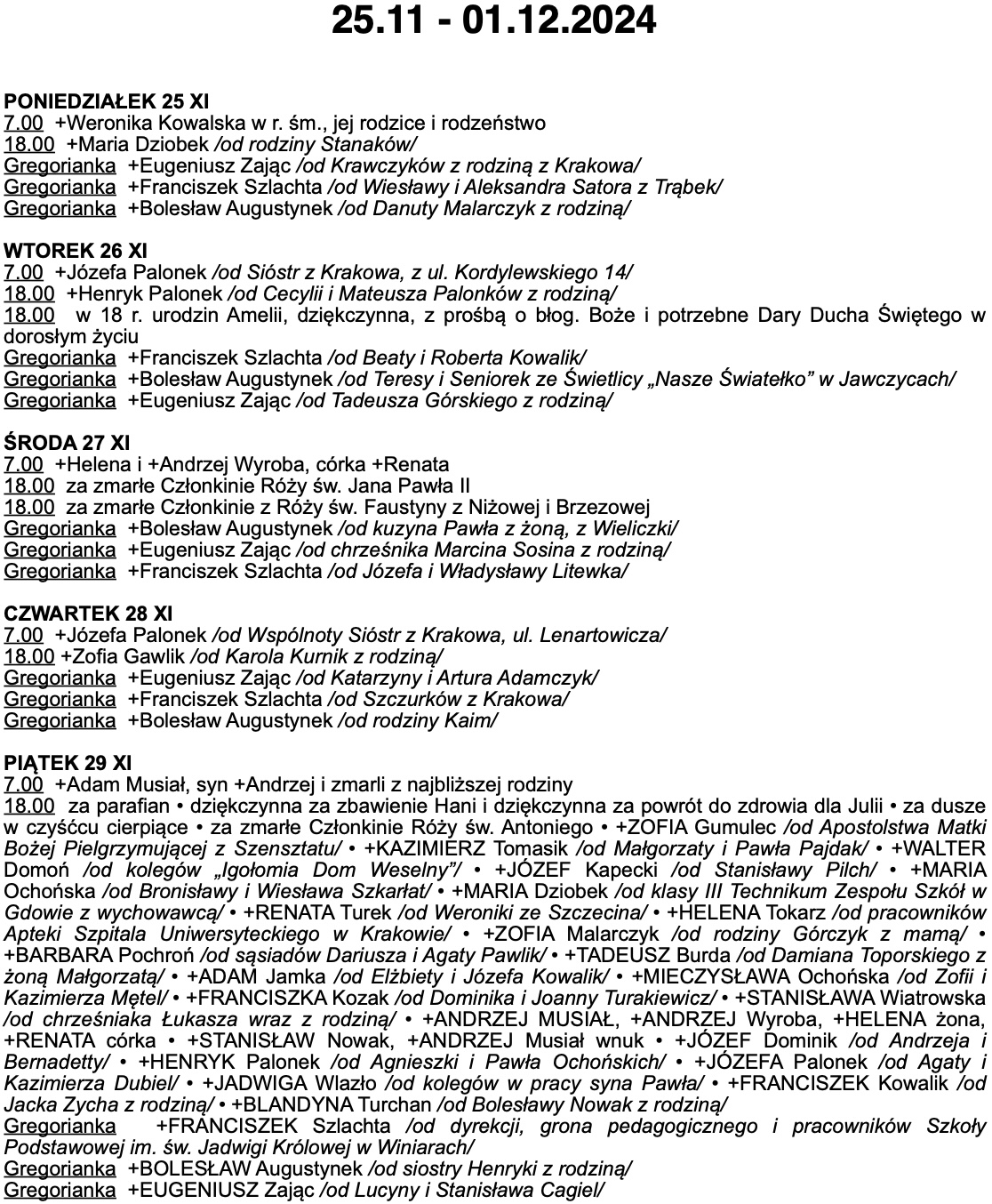 INTENCJE MSZALNE