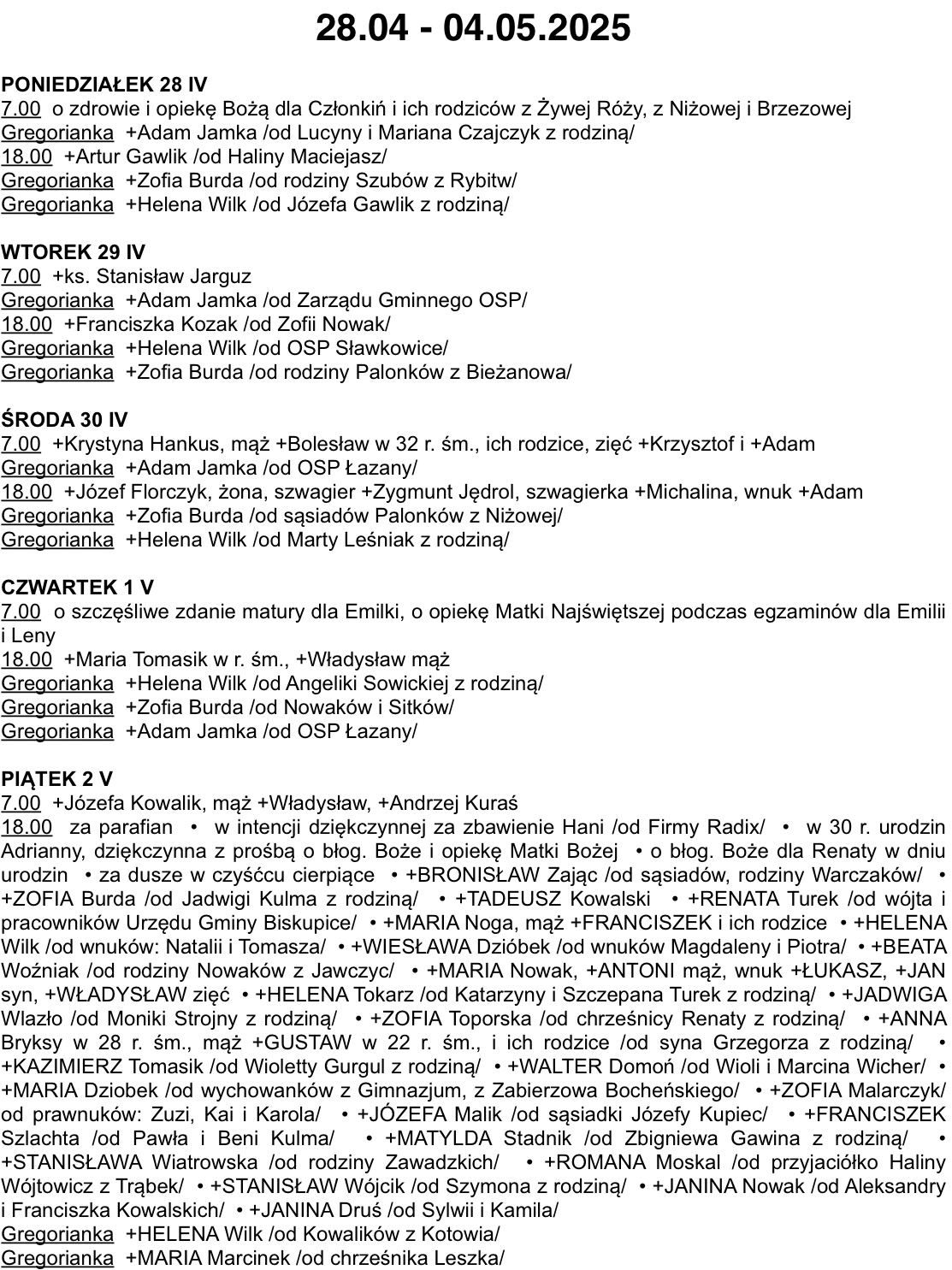 INTENCJE MSZALNE