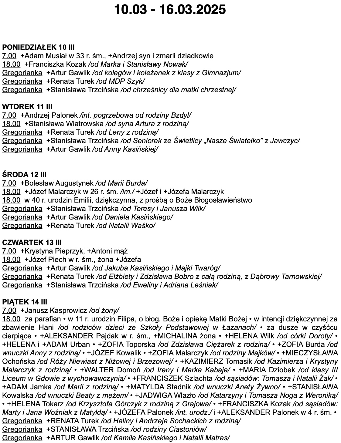 INTENCJE MSZALNE