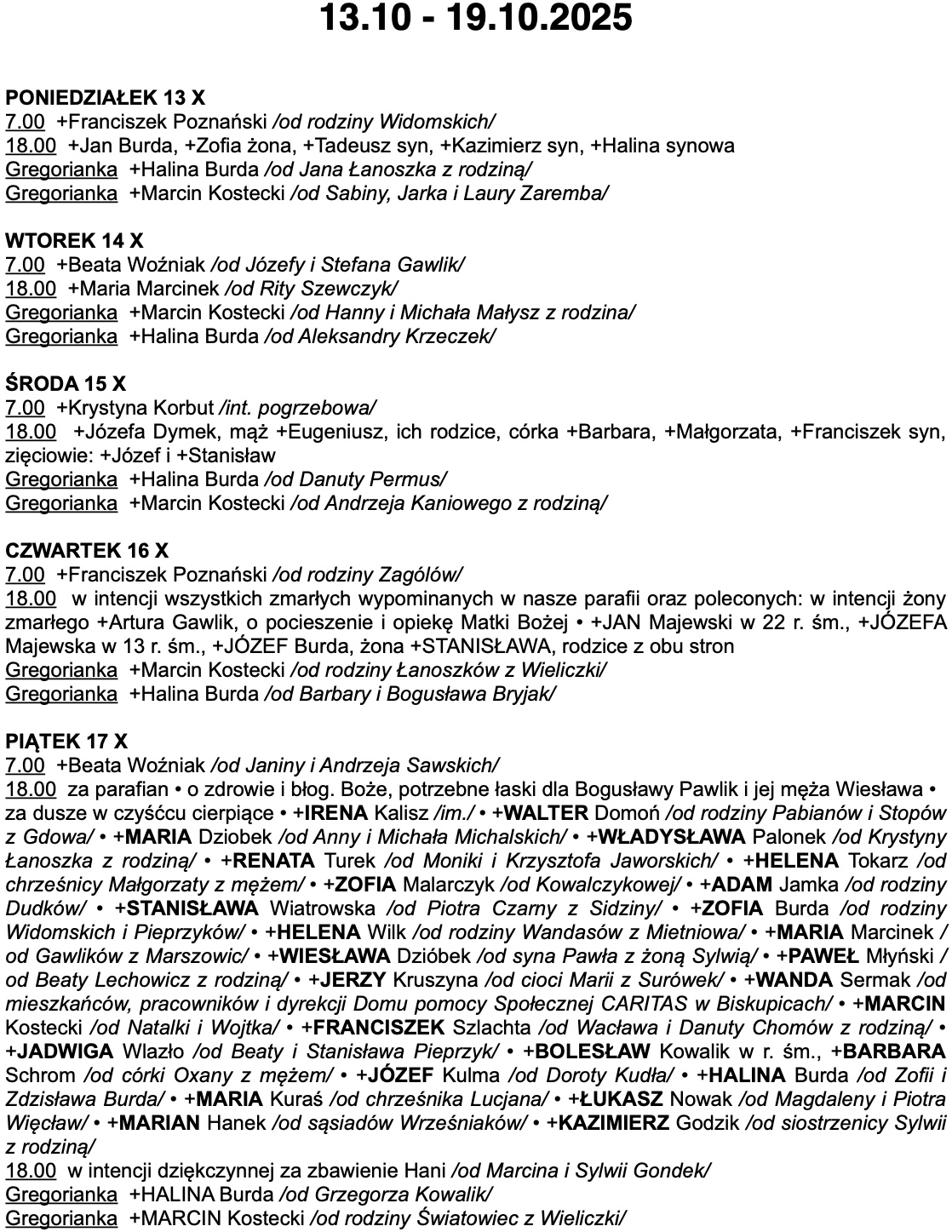 INTENCJE MSZALNE