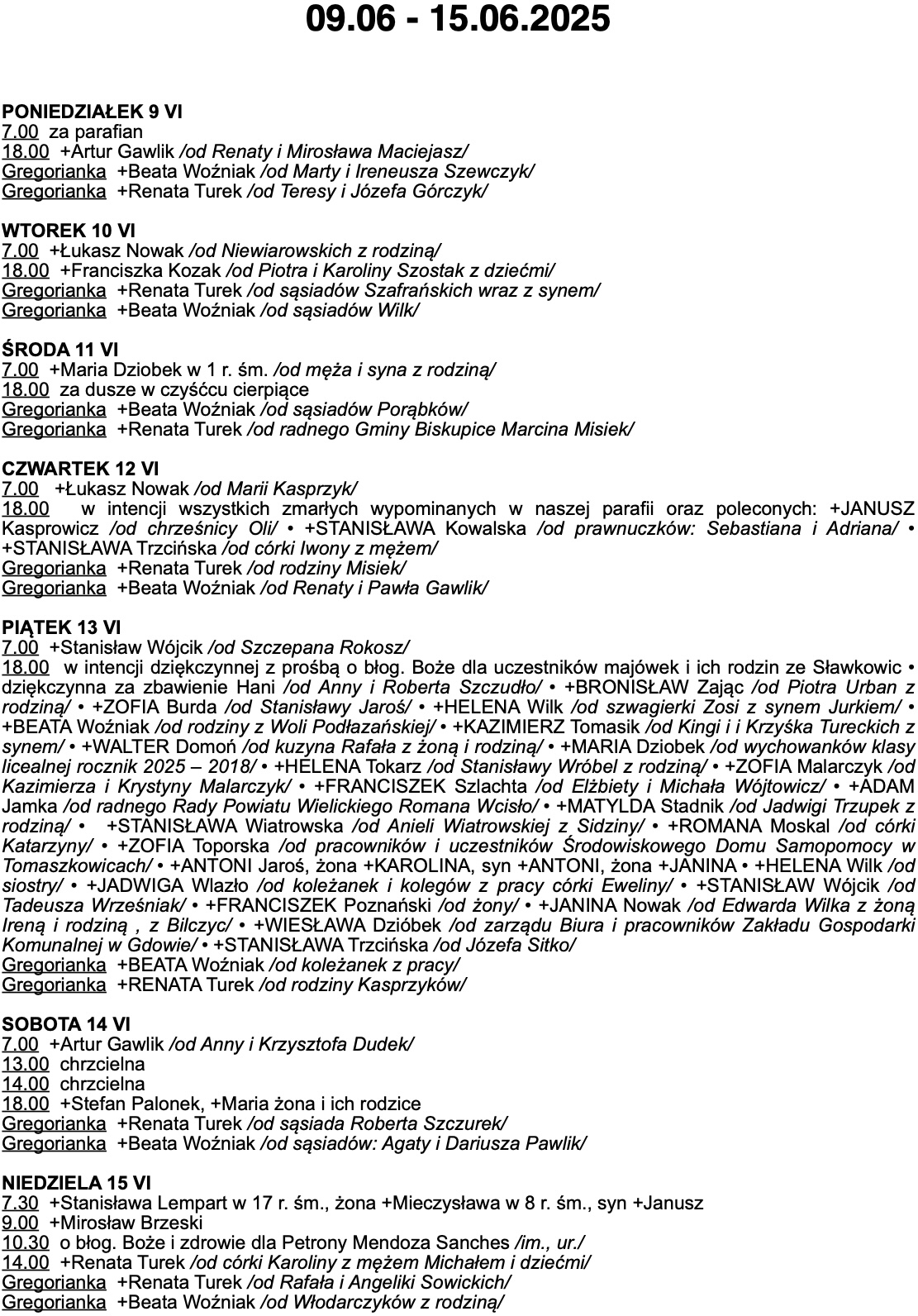 INTENCJE MSZALNE